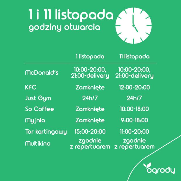 Drodzy klienci, poniżej prezentujemy szczegóły dotyczące funkcjonowania naszego centrum w sobotę, 1 listopada oraz wtorek, 11 listopada.