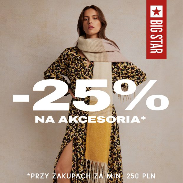 Należy dokonać zakupu za min. 250 zł., aby otrzymać -25% rabatu na akcesoria: czapki, szaliki, rękawiczki, paski, portfele, plecaki, okulary, skarpety, bielizna, torby.