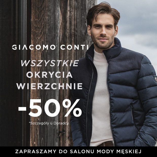 Tylko teraz w Giacomo Conti -50% na kurtki, płaszcze i skóry! Zrób miejsce w szafie, bo te okazje długo nie potrwają. Odwiedź salon mody męskiej Giacomo Conti i znajdź swój zimowy must-have!
