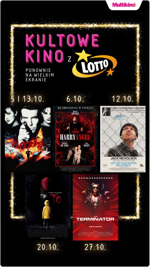 Październik w kinach sieci Multikino będzie obfitował w pokazy kinowych klasyków w ramach cyklu „Kultowe Kino z Lottto”. Widzowie będą mogli zobaczyć 5 i 13 października „GoldenEye” z 1995 roku, a 6 października „Harry Angel” z Robertem De Niro. Ponadto 12 października z okazji 50. rocznicy od premiery na wielkie ekrany powróci „Lot nad kukułczym gniazdem” z Jackiem Nicholsonem. Natomiast 20 października na widzów czeka pokaz horroru „TO”. Do filmu będzie dołączony specjalny 5-minutowy materiał, zawierający behind-the-scenes z powstawania „Welcome to Derry” oraz krótki wywiad z reżyserem „TO” Any Muschiettim.