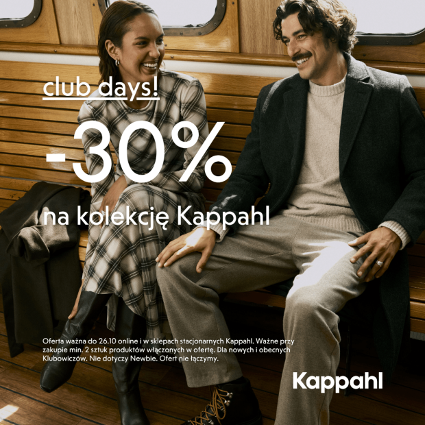 Oferta ważna do 26.10 online i w sklepach stacjonarnych Kappahl. Ważne przy zakupie min. 2 sztuk produktów włączonych w ofertę. Dla nowych i obecnych Klubowiczów. Nie dotyczy Newbie. Ofert nie łączymy.
