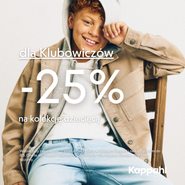 Ważne przy zakupie min. 2 produktów z oferty w sklepach Kappahl i na kappahl.com do 8.3. Oferta dla nowych i obecnych Klubowiczów. Nie dotyczy Newbie. Ofert nie łączymy.