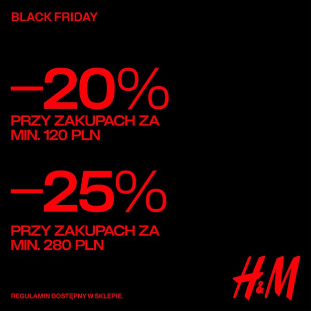 Odwiedź sklep H&M w naszym centrum i skorzystaj z wyjątkowych rabatów – tylko w dniach 28-29.11.2025: -25% przy zakupach za min. 280 PLN lub -20% przy zakupach za min. 120 PLN. 🛒💸
